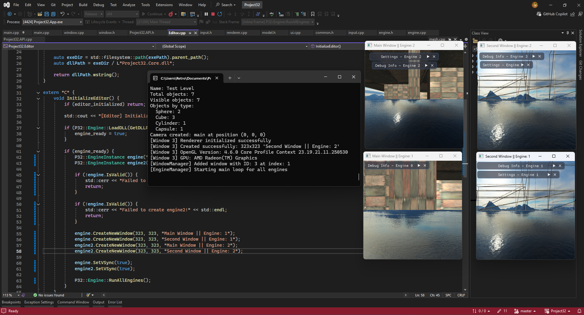 - Multi-Window Support: Each engine can manage multiple windows with independent rendering contexts